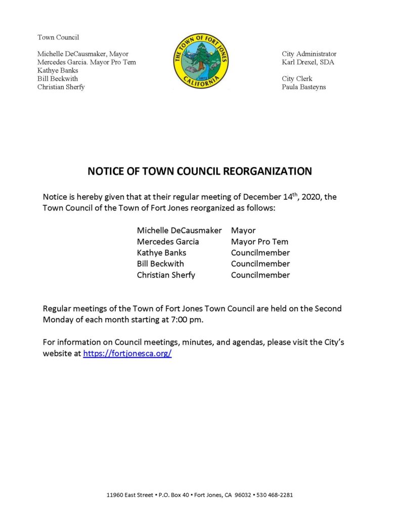 Posted on December 15, 2020, Edited November 24, 2021 by Celeste McFall Notice of Council Reorganization