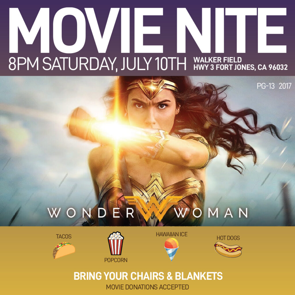 Join us at Walker Field at 8:00 p.m. to screen of “Wonder Woman.” Bring a picnic blanket or chiar. Food available for purchase. Donations welcome.