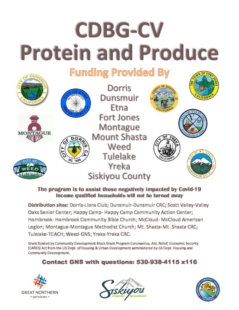 This program is to assist those negatively impacted by Covid-19. Income-qualified households can pick up protein and produce every other month at Valley Oaks Seniors on Thursdays between 12:00pm and 2:00pm beginning on January 20, 2022. See flyer for dates.
